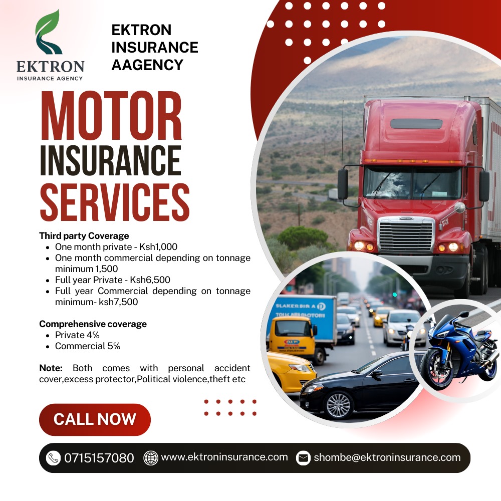 Our 3rd party and Comprehensive policies come with personal accident covers, excess protector, Political Violence, theft etc